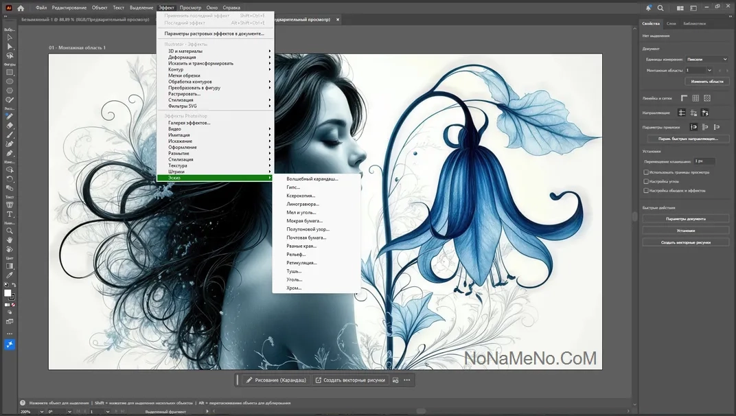 Среди заметных нововведений последних версий — улучшенные 3D-эффекты. Векторные рисунки можно преобразовывать в объемные объекты, экспериментируя с экструзией, вращением, настройками освещения и материалами из библиотеки Substance. Функция «Макет» (Beta) позволяет реалистично накладывать графику на фотографии реальных объектов: упаковки, кружки, футболки. Программа анализирует изгибы и края поверхности, автоматически адаптируя векторное изображение, при этом изменения всегда можно отменить или скорректировать.