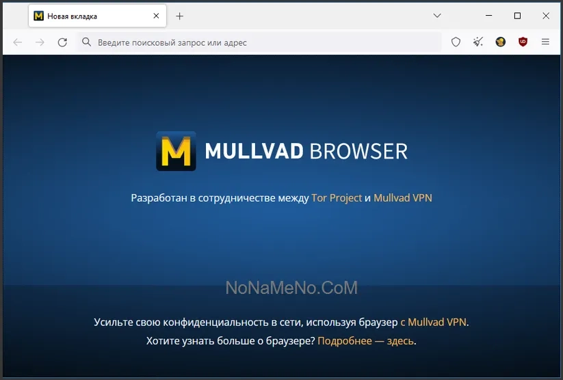 uBlock Origin и Mullvad Browser Extension уже интегрированы и готовы к работе.