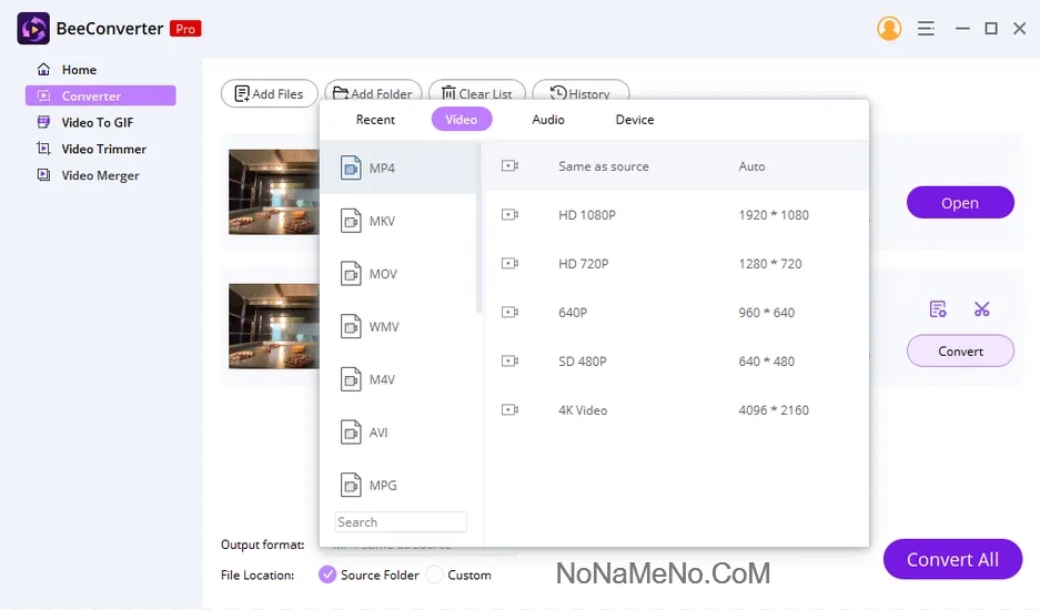 • Всеобъемлющая поддержка форматов: Утилита без труда справляется с преобразованием файлов между всеми ключевыми мультимедийными форматами. Будь то стандартные видео (MP4, MKV, AVI, FLV, WEBM), аудиодорожки (MP3, WMA, WAV, M4A) или видео ультравысокой четкости, включая 4K-разрешение — BeeConverter Pro гарантирует корректную обработку исходного материала.