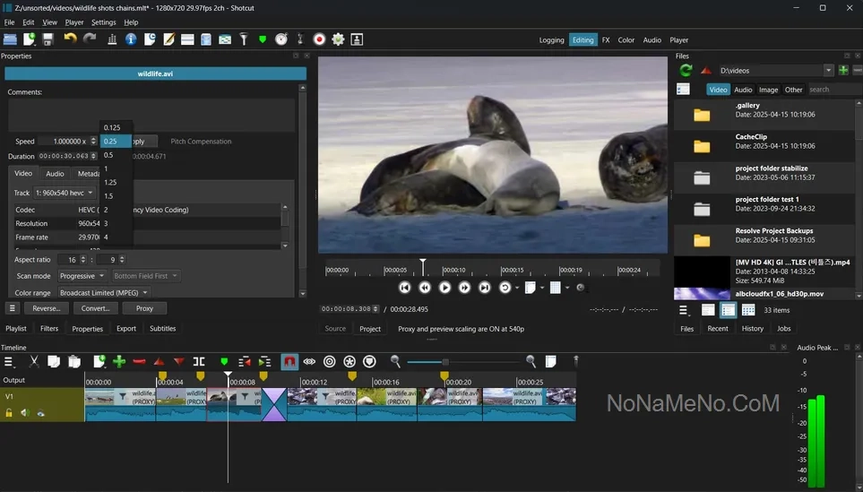 • Аудиоинструментарий: Звуковой движок Shotcut не уступает видеочасти. Присутствуют фильтры для нормализации громкости, удаления шумов, эквалайзер, а также точная настройка частоты дискретизации, позволяющая подготавливать материал под строгие требования телевещания или подкаст-платформ.