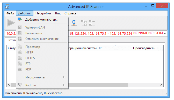 Advanced IP Scanner программа сканер - довольно быстрый и очень надежный, а также прост в обращении сканер локальной сети, работает под Windows. После запуска, программа соберет большое количество различной информации о компьютерах в сети, причем выполнить все это за несколько секунд.