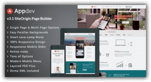 Страницы темы создаются с использованием популярного конструктора страниц SiteOrigin. Appdev поставляется с поддержкой около 35+ пользовательских элементов / виджетов компоновщика страниц.