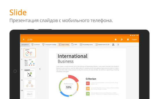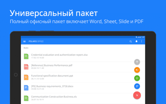 Polaris Office приложение для Android - универсальный офисный пакет, который позволяет открывать, редактировать и сохранять офисные файлы всех типов, таких как Word, Excel и Powerpoint, создавать презентации на основе слайдов с помощью функций пера и указателя.