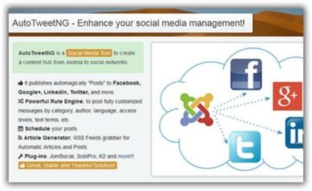 AutoTweet NG Pro Joocial rus кросспостинг в социальные сети - максимальная версия компонента для автоматической публикации сообщений Joomla 2.5-3.x. Рассылает в Ваши любимые социальные сети Twitter, Facebook, LinkedIn, Google+, Вконтакте и другие.