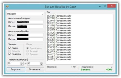 1. Добавить аккаунты в программу ( пример так: BosslikeLogin:Bosslikeparol:InstagramLogin:Instagramparol )