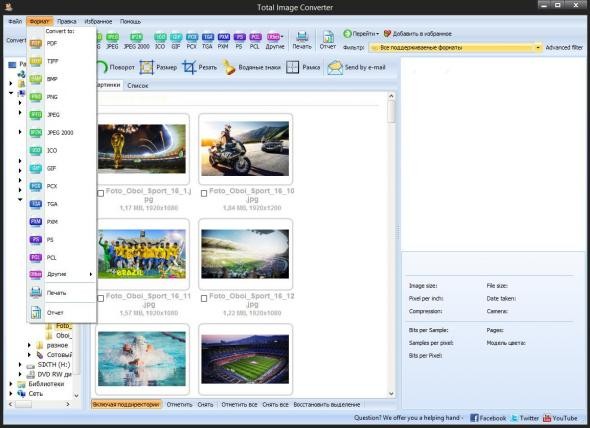 Total Image Converter сделает всё, что вам потребуется: вы сможете преобразовывать большие TIFF изображения в маленькие JPEG, подгонять картинки под размеры веб-страницы, или преобразовать RAW фотографии в более популярные форматы.