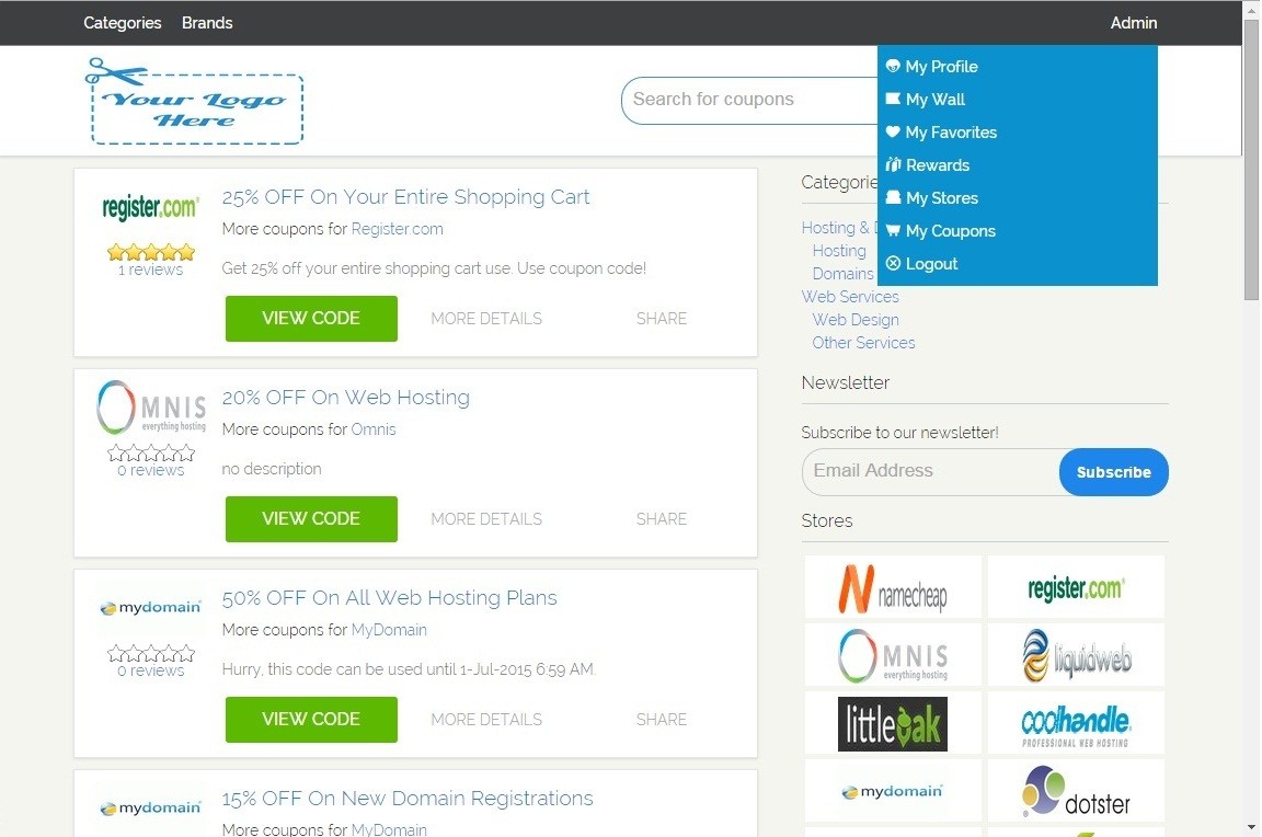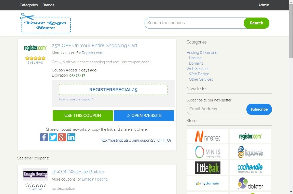 Демо - http://couponscms.com/demo.html