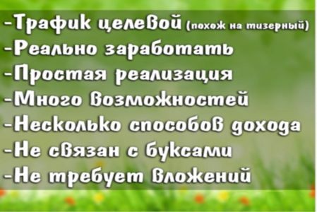 Получить трафик и монетизировать его вы можете уже в первый день работы сразу после изучения курса. Для его реализации не требуются особые знания, достаточно быть уверенным пользователем Интернета. Наш курс не связан с буксами и не боится конкуренции.