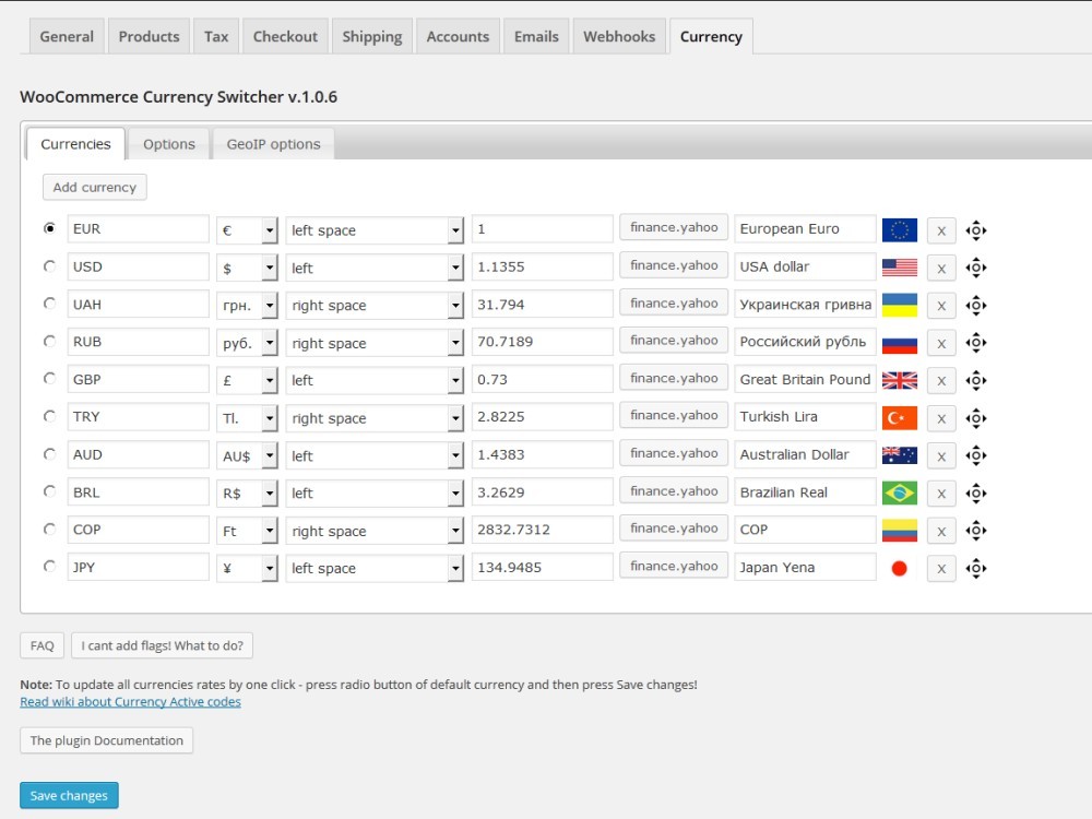 WooCommerce Currency Switcher 2.1.5 плагин wordpress - это плагин woocommerce, что дает возможность для переключения на различные валюты и получать их услуги в онлайн, замечательный плагин для Вашего woocommerce интернет магазина