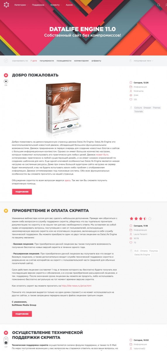 DataLife Engine 11.0 Final Release - в данном релизе для вас были подготовлены абсолютно новые демонстрационные шаблоны...