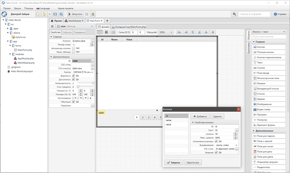 DevelNext среда разработки программ - ориентированная на быстрое создание программ, простых 2D игр, функциональных прототипов под Windows/Linux/Mac. Инструментарий среды обеспечивает быстрый старт, легкость в освоении и обучении, он позволяет создавать десктопные программы с помощью языка PHP и различных мастеров и диалогов.