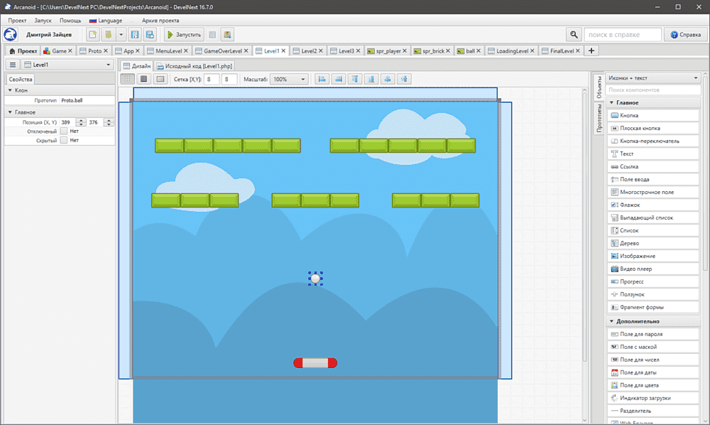 Также приложение позволяет создавать простые игры с физикой твердых тел, для этого есть компоненты и специальные модули уже из коробки. Кроме того, есть и редактор спрайтов, спрайтовая анимация и возможность ей управлять.