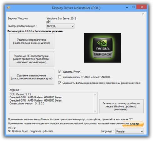 Display Driver Uninstaller программа DDU - Эта утилита которая позволит вам полностью удалить драйвера для видеокарт NVIDIA и AMD, будут удалены также и ключи из реестра, все файлы и папки.