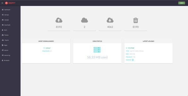 Droppy 1.3.0 скрипт хостинга файлов - это онлайн система обмена файлами. Вы можете отправлять файлы через электронную почту или скопировать ссылку и поделиться ею с кем хотите