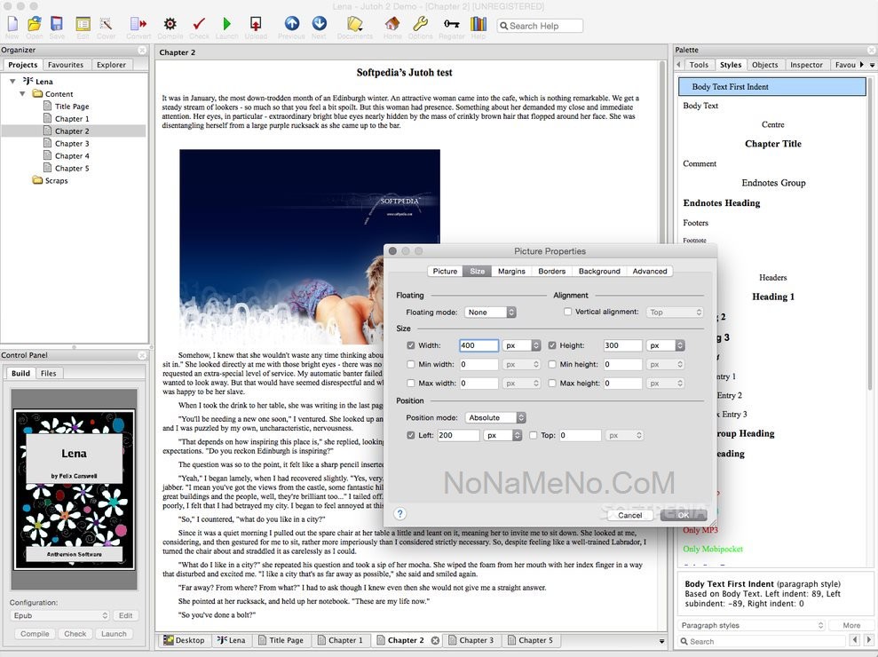 Помимо автоматической генерации электронных изданий, Jutoh предлагает встроенный текстовый редактор с возможностями оформления и стилистики, что значительно упрощает подготовку содержимого к печати. Среди ключевых особенностей Jutoh выделяется уникальная система генерации обложек: вы можете подобрать готовый шаблон из библиотеки проекта или же разработать собственный дизайн при помощи встроенного редактора обложек.