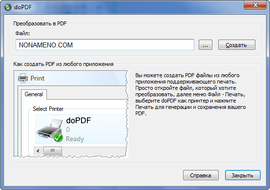 Таким образом, функционирует приложение по обычному и ранее проверенному методу, вы открываете программу у которого имеется опция печати, нажимаете на нее, в роли принтера используем doPDF, далее фактически и будет сделано конвертирование в формат PDF, естественно качественность и остальные настройки вы сумеете подстроить под себя.