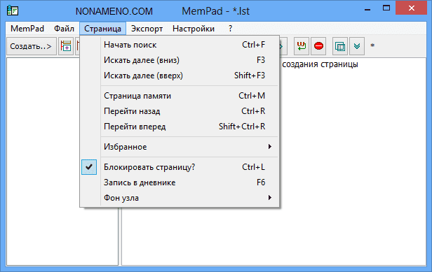 При создании заметки можно вставить текущую дату и время, не смотря на древовидную структуру, разобраться в редакторе очень просто. В программе MemPad есть система поиска.