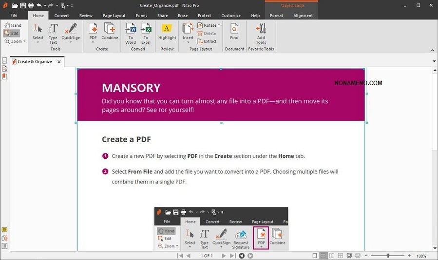 Nitro Pro Enterprise редактор PDF файлов - отличная коллекция инструментариев, при помощи них сможете осуществлять полный диапазон мероприятий по разработке и корректированию PDF документов. Вы имеете возможность осуществлять обработку документов в пакетном варианте, преобразовывать данные из больше чем 300-т форматов записи в PDF, соединять несколько документов в один, сканировать файлы сразу же в формат PDF.