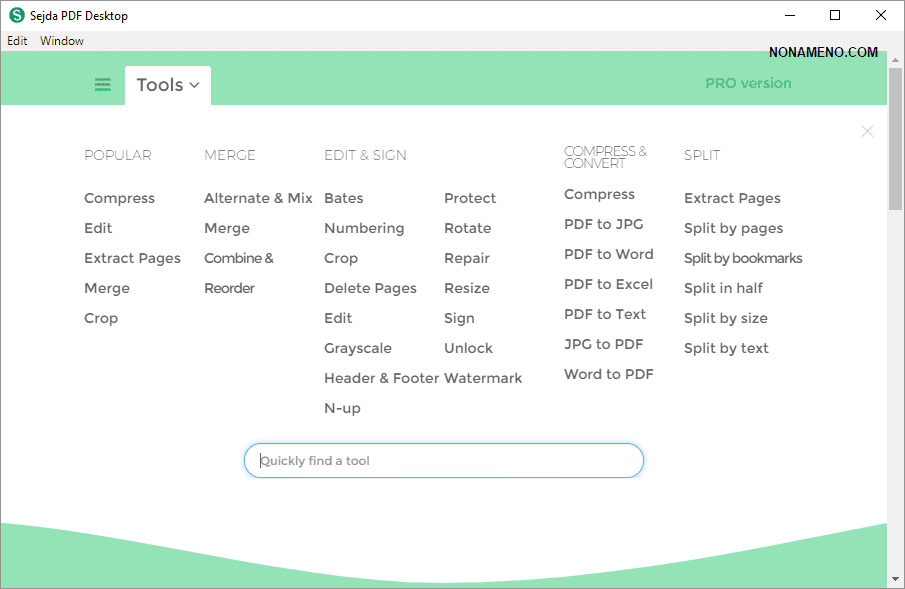 Sejda PDF Desktop Pro обработка ПДФ - исключительно многофункциональная компьютерная программа, она имеет возможность свершать с документами PDF по существу какие угодно действия, на скриншоте все видно и из этого становится ясно до какой степени широкий круг возможностей нам предлагается.