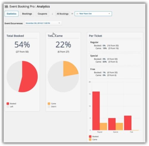 Event Booking Pro плагин wordpress - аддон, который добавляет следующие функции: QR-коды в шаблоны писем. Чекин страница сделана для мобильных устройств. Система аналитики