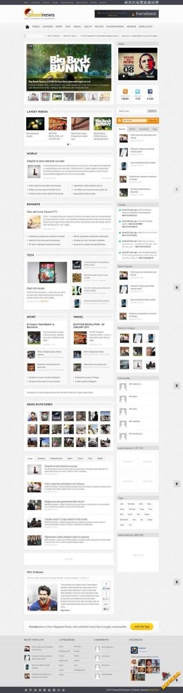 Созданная на HTML5/CSS3, Goodnews имеет адаптивный дизайн. Идеально подойдет для новостного, игрового или журнального сайта