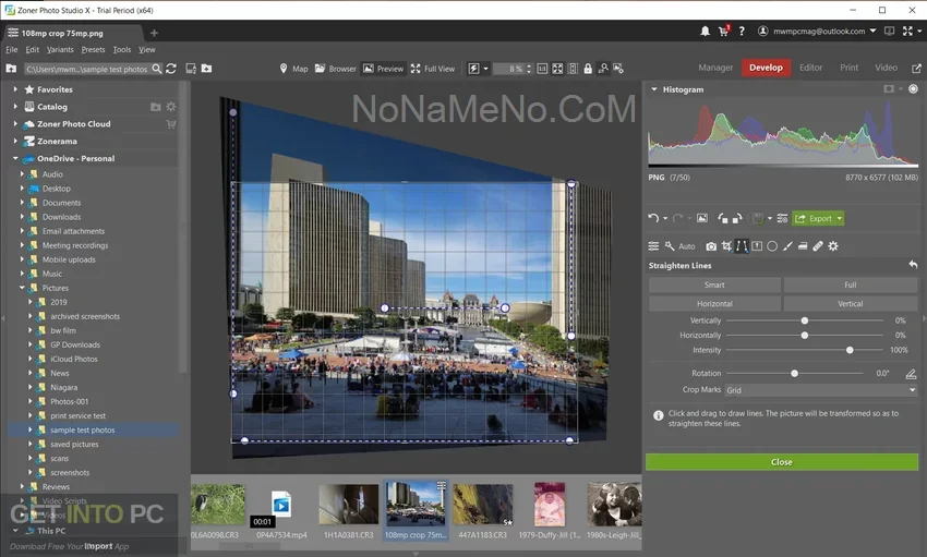 • Инновационные инструменты, такие как автоисправление перспективы, выравнивание горизонтальной линии и коррекция наклона.