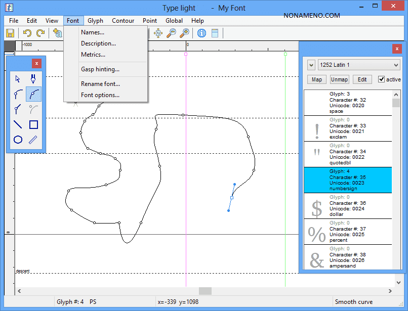 Type light программа редактирования шрифтов - приложение хоть полностью бесплатная, но предоставляет обилие потенциала по редактированию и рисованию шрифтов разновидности OpenType. В настоящее время изготовить свой оригинальный шрифт возможно довольно легко, разумеется для такого вам нужно являться художником и дизайнером.
