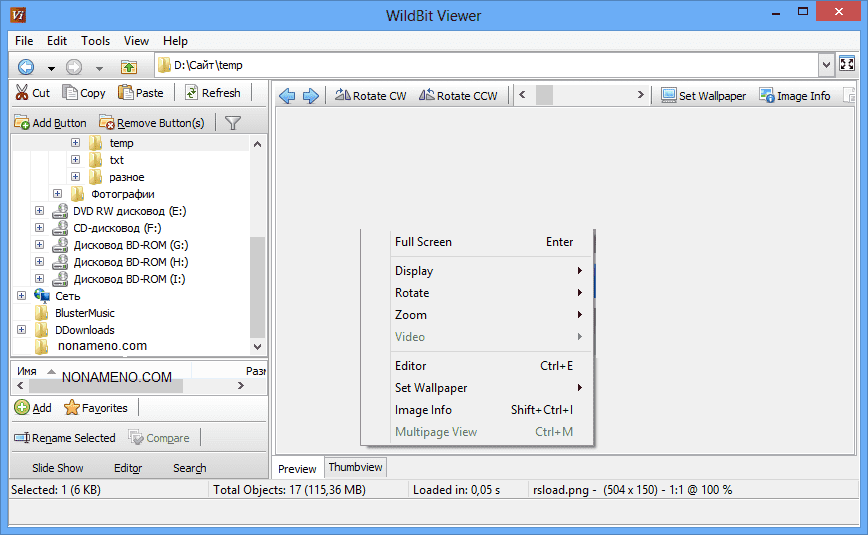 WildBit Viewer - испытанный просмотрщик рисунков, целесообразный для обычного юзера - он готов предоставить особенно нужные параметры управления и правки, употребляет невысокую величину системных ресурсов и обладает превосходным временем отклика.