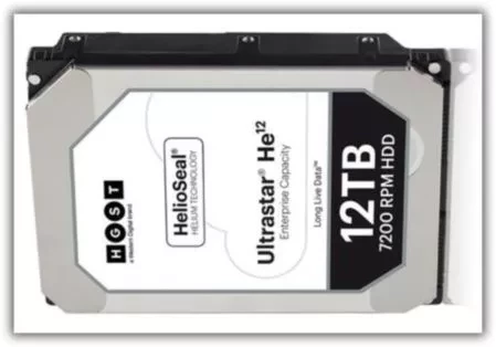 Жёсткие диски Western Digital Ultrastar He12 ёмкостью 12 Тбайт - Ёмкость жёсткого диска довольно велика - она составляет 12 Tбайт. Для того, чтобы реализовать такое решение, Western Digital использует свою знаменитую технологию HelioSeal. Её особенность заключается в том, что диск заполняется не воздухом, а гелием.