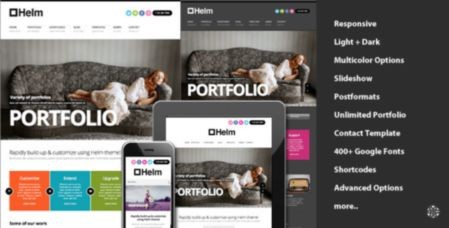 Helm шаблон тема wordpress - адаптивная тема портфолио для творческих профессионалов. Шаблон может выводить список блогов и постов в полную ширину или 2 колонки