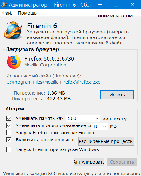 Главная цель приложения ликвидировать утечку оперативной памяти в браузере FireFox. Для функционирования приложение начнет применять безопасные опции API под именем EmptyWorkingSet, которые конкретно начнут принуждать интернет-браузер расходовать поменьше памяти.