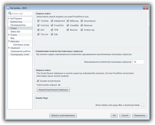Программа FrostWire работает по защищенному TSL соединению, так что за безопасность разработчики не переживают. Имеется внутренний поиск по торрент файлам, все файлы разделяются на категории, можно посмотреть о них детальную информацию, есть предварительный просмотр мультимедиа файлов.