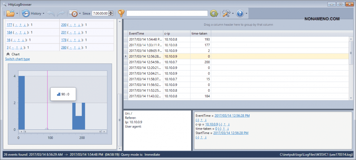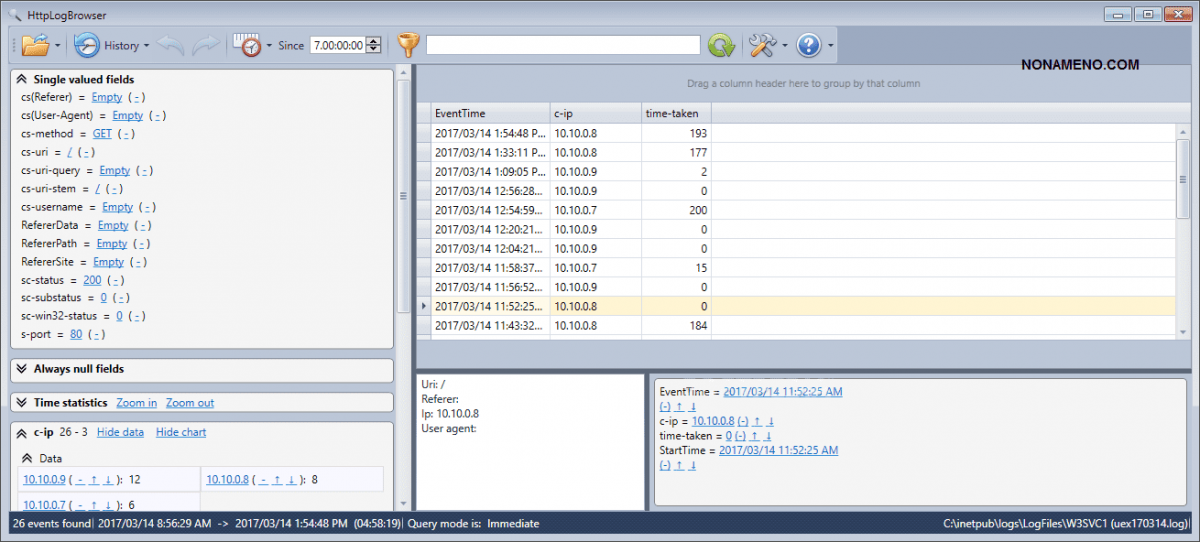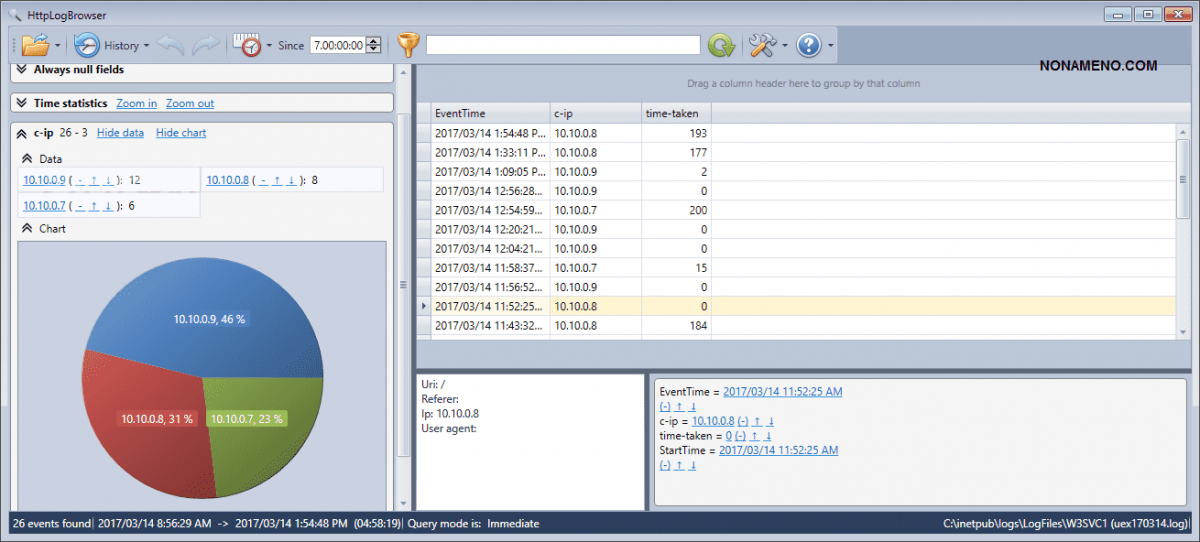 Программа HttpLogBrowser продвинутая, но несложная в применении приложение, каковая всегда готова предоставить вам немудреный способ разбора журналов W3C на интернет-сайте, который вы помещаете в IIS либо Azure.