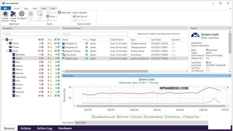 Программа ServerSentinel осуществляет контроль за серверами, сетевыми службами (таковые как HTTP, POP3 и SNMP), дополнительно контролирует место на hdd и грамотное использование оперативной памяти. Разнообразные детекторы контролирования и самостоятельно предопределяемые промежутки тестирования гарантируют достоверный мониторинг всей системы.