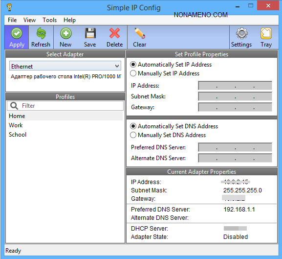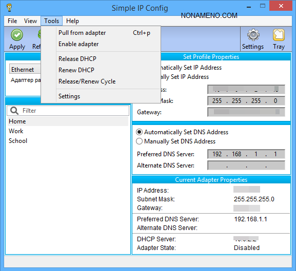 Программа Simple IP Config позволит вам выбрать сетевое подключение и потом можно автоматически получить как IP так и DNS, есть и ручной режим работы. Все просто и удобно.