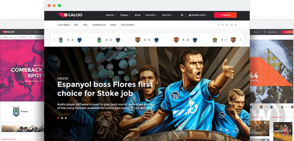 Шаблон Calcio содержит в себе не только лишь прогрессивный и современный дизайн, но и все требуемые возможности (к примеру, компонент SP Soccer) для управления перечнем футболистов, команд / клубов, таблицы лиг, таблицы баллов, профили играющих спортсменов и их результаты и т.д.