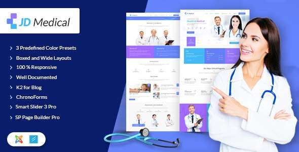 JD Medical здоровье и медицина отзывчивый шаблон Joomla - разработан исключительно для медицинских клиник, стоматологических или ветеринарных веб-сайтов.