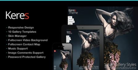 Keres адаптивный шаблон тема wordpress - интересный адаптивный дизайн; 8 вариантов домашних галерей; 10 галерея шаблонов; 3 шаблона портфолио; фильтры; настраиваемые цвета, полноэкранное слайд-шоу для фото-галерей