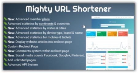 Mighty URL Shortener скрипт сервиса коротких ссылок - включают в себя множество уникальных функций гео-таргетинг, админ-панель, полностью рабочий интерфейс пользователя (Регистрация, Вход, восстановление пароля, страница контактов), фильтрацию URL и API систему, и многое другое