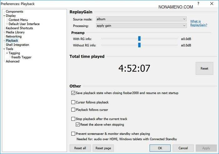Следующим способом, какой делая foobar2000 комфортным и не сложным в эксплуатации, считается поддержка горячих клавиш, а подобное значит, что вам не обязательно запускать основное окошко всякий раз, если вы желаете сделать настройку. Помимо этого, соответствия клавиш настраиваются.