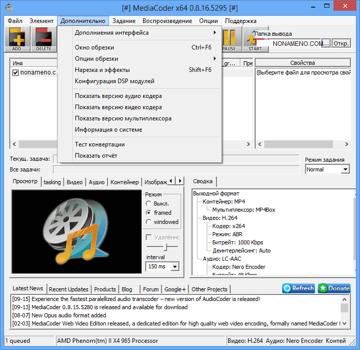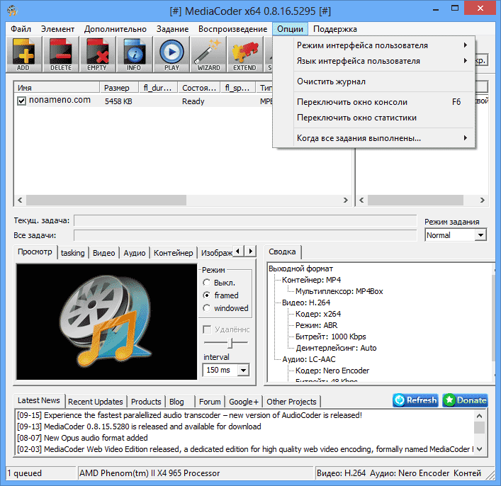 MediaCoder 0.8.52 Build 5920 компрессия аудио и видео файлов