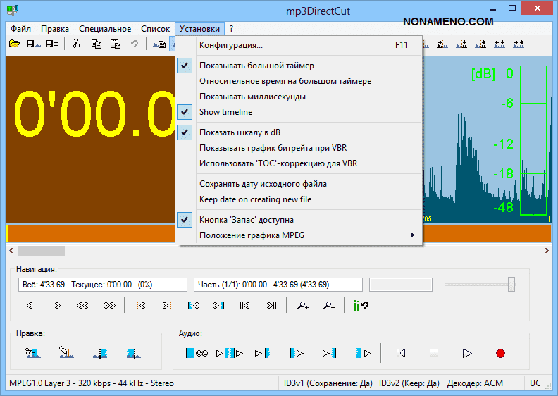 mp3DirectCut 2.27 скачать аудио редактор Mp3 без потери качества