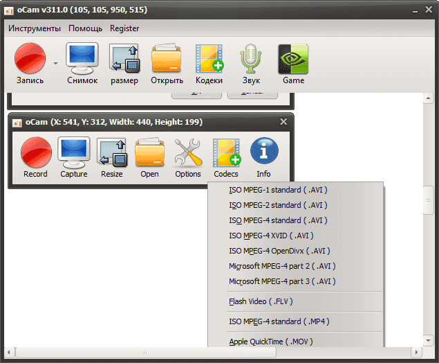 Скачать oCam Screen Recorder & Capture создание скриншотов и видео