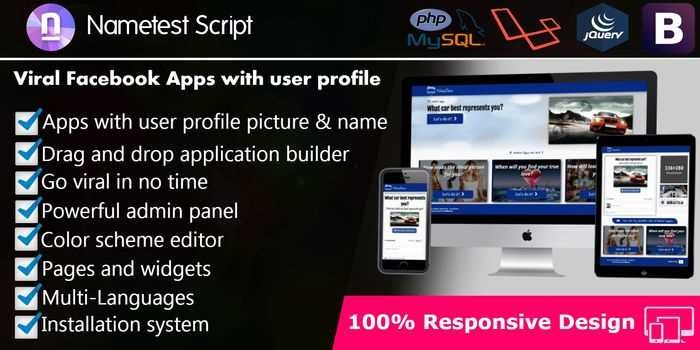 Nametest скрипт создания викторин - для создания вирусных приложений / викторин с изображением и именем пользователя в профиле пользователя. Nametest Script - лучший способ начать свой собственный сайт с такими приложениями, как «Как вы симпатичны или сексуальны?», «Какое животное отражает вашу душу?», «Когда у вас будет первый ребенок?» и т.д.