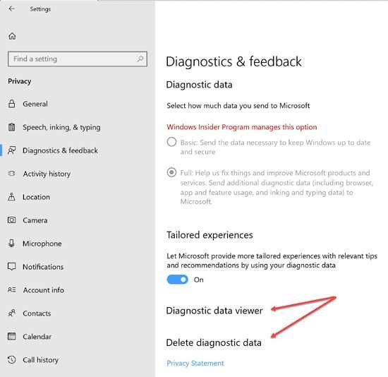 В инсайдерские сборки Windows 10 Build 17063 и 17074 компания Microsoft добавила сразу два раздела меню, первый из которых отвечает за просмотр диагностической информации, а вторая предназначена для удаления этих самых данных.