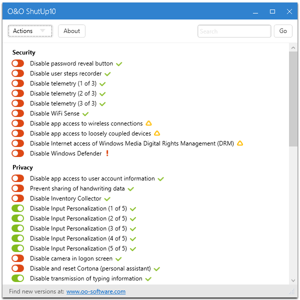 O&O ShutUp10 отключение компонентов Windows 10 - маленькая утилита, которая позволит пользователям операционной системы Windows 10, отключить ее спорные компоненты. Ведь многие считают, что все они шпионские, другие не переживают, но им просто некоторые функции кажутся лишними.