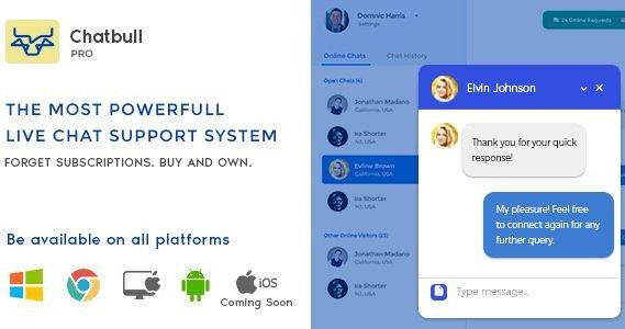 Скрипт Chatbull включает в себя огромный список функций, включая настольное и андроидное приложение, которое помогает предпринимателям, малым и крупным предприятиям связываться со своими потенциальными клиентами и понимать их потребности.