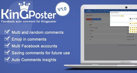 Facebook Auto comment скрипт модуль для Kingposter - это удивительный модуль позволяет автоматически комментировать ваши сообщения, которые вы делали в группах Facebook, через Kingposter, используя учетные записи Multi Facebook и случайные комментарии.