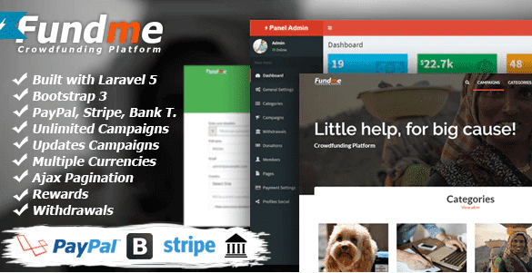 Fundme скачать скрипт сбора средств - веб-приложение с которым вы сможете сформировать сбор денежных средств по разнообразным направлениям, админ имеет возможность конкатенировать абонентов, которые имеют возможность формировать безграничное число кампаний, делать группы, где разнообразные пользователи смогут оказать помощь тем, кто в этом нуждается.