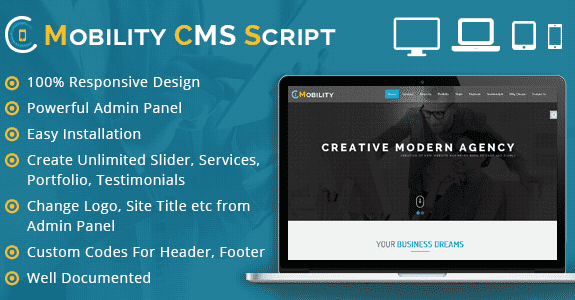 Mobility CMS скрипт одностраничного сайта Лендинг - с очень элегантным внешним видом и стильным, адаптивным веб-дизайном. Он идеально подходит для использования в любых типах бизнеса.